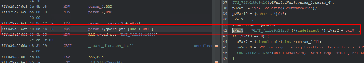 After being done with this vulnerability, I blacklisted the RpcRegeneratePrintDeviceCapabilities procedure to see if other procedures contain new vulnerabilities as well. And yes, calling the RpcPrintSupportOperation results in another crash! RpcPrintSupportOperation takes 5 input parameters.
